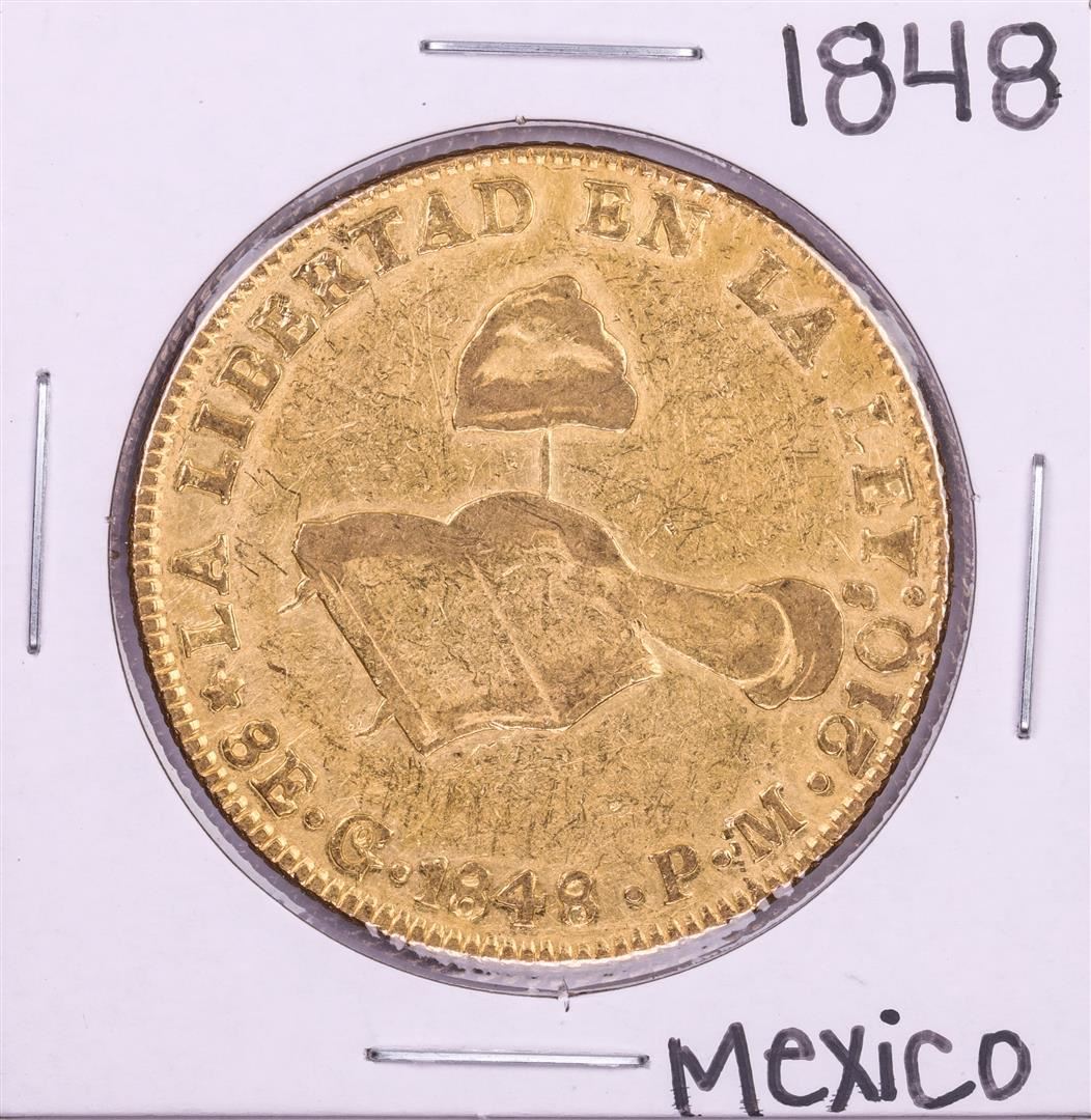 One 1848GoPM Mexico 8 Escudos Gold Coin.