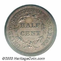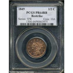 <table><tr><td><TABLE cellSpacing=0 cellPadding=0 width="100%" bgColor=#000000 border=0><TBODY> <TR><TD width="100%"><TABLE cellSpacing=1 cellPadding=3 width="100%" border=0><TBODY><TR><TD width="100%" bgColor=#79735c><FONT face=arial color=#ffffff size=3><B>Description</B> </FONT></TD></TR><TR><TD width="100%" bgColor=#ffffff><FONT face=arial size=2><B>1849 1/2 C Restrike PR64 Red and Brown PCGS.</B></I> B-2, High R.6. Although business strike Half Cents were struck in 1849, they had a Large Date. The Small Dates are proofs, and are very rare. The proofs are classified into Originals, which have large berries on the wreath, and Restrikes, which feature small berries. Two or three proof Large Date Half Cents are also known. The present specimen is dominated by luminous orange-gold color, although the obverse has a couple of tiny toning flecks and a faint stain is centered above the A in HALF. A tick near Liberty's ear serves as a pedigree. Population: 4 in 64, 1 finer (9/03). </FONT></TD></TR></TBODY></TABLE></TD></TR></TBODY></TABLE><BR><A name=PricesRealized></A><TABLE cellSpacing=0 cellPadding=0 width="100%" bgColor=#000000 border=0><TBODY><TR><TD width="100%"><TABLE cellSpacing=1 cellPadding=3 width="100%" border=0><TBODY><TR><TD width="100%" bgColor=#79735c><A name=PR><FONT face=arial color=#ffffff size=3><B>Previous Prices from Heritage Auctions</B> </FONT></A></TD></TR><TR><TD bgColor=#f6f6ed>No Prior Data Recorded </TD></TR><TR><TD bgColor=#ffffff><FONT face=arial size=1 ?>PLEASE NOTE: All prices realized reflect the final hammer price PLUS the buyer's premium in auctions that charge a buyer's premium. Each item has a notation at the top of the listing indicating whether that lot included a buyer's premium. Example: A item that sells with a final hammer price of $100 and a 20% buyer's premium will display with a price realized of $120. All information listed is intended to be as accurate as possible, but errors are possible. Please use this guide carefully and inform us of any inaccuracies. </FONT></TD></TR></TBODY></TABLE></TD></TR></TBODY></TABLE><BR><TABLE cellSpacing=0 cellPadding=0 width="100%" bgColor=#000000 border=0><TBODY><TR><TD width="100%"><TABLE cellSpacing=1 cellPadding=3 width="100%" border=0><TBODY><TR><TD width="100%" bgColor=#79735c colSpan=6><FONT face=arial color=#ffffff size=3><B>Price Guide*</B> </FONT></TD></TR><TR bgColor=#f6f6ed><TD align=middle><B>Grade</B> </TD><TD align=middle><B>Coin World<BR>(Trends)</B> </TD><TD align=middle><B>Numismedia<BR>Retail</B> </TD><TD align=middle><B>Numismedia<BR>Wholesale</B> </TD><TD align=middle><B>Coin<BR>Universe</B> </TD><TD align=middle><B>Heritage<BR>Value Index</B> </TD></TR><TR bgColor=#ffffff><TD align=middle>63</TD><TD align=right>---</TD><TD align=right>---</TD><TD align=right>---</TD><TD align=right>$5,600.00</TD><TD align=right>$3,920.00</TD></TR><TR style="FONT-WEIGHT: bold" bgColor=#cccfdd><TD align=middle>64</TD><TD align=right>---</TD><TD align=right>---</TD><TD align=right>---</TD><TD align=right>$7,700.00</TD><TD align=right>$5,390.00</TD></TR><TR bgColor=#ffffff><TD align=middle>65</TD><TD align=right>---</TD><TD align=right>---</TD><TD align=right>---</TD><TD align=right>---</TD><TD align=right>---</TD></TR><TR bgColor=#ffffff><TD colSpan=6><FONT size=1>*All information listed is intended to be as accurate as possible, but errors are possible. No item may be returned or refused based on this information which is provided as a service to our customers. You should contact each pricing source directly to determine the accuracy of this information. </FONT></TD></TR></TBODY></TABLE></TD></TR></TBODY></TABLE><BR><TABLE cellSpacing=0 cellPadding=0 width="100%" bgColor=#000000 border=0><TBODY><TR><TD width="100%"><TABLE cellSpacing=1 cellPadding=3 width="100%" border=0><TBODY><TR><TD width="100%" bgColor=#79735c><FONT face=arial color=#ffffff size=3><B>Population Guide</B> </FONT></TD></TR><TR bgColor=#ffffff><TD align=middle><!-- Begin Output of Population Grid--><TABLE cellSpacing=0 cellPadding=0 width="100%" border=0><TBODY><TR><TD vAlign=center><TABLE cellSpacing=0 width="100%" border=1 cellsadding="3"><TBODY><TR><TD vAlign=center><TABLE cellSpacing=0 cellPadding=3 width="100%" border=1><TBODY><TR><TD vAlign=center align=middle bgColor=#f0f1e8 colSpan=2 <CENTER><FONT face=Arial size=2><B>PCGS Pop </B></FONT><CENTER></CENTER></TD><TD vAlign=center align=middle bgColor=#f0f1e8 colSpan=2><CENTER><FONT face=Arial size=2><B>NGC Pop</B></CENTER></FONT></TD></TR><TR><TD vAlign=center><FONT face=Arial size=2>(64)</FONT> </TD><TD vAlign=center align=right><FONT face=Arial size=2>4</FONT> </TD><TD vAlign=center><FONT face=Arial size=2>(64)</FONT> </TD><TD vAlign=center align=right><FONT face=Arial size=2>1</FONT> </TD></TR><TR><TD vAlign=center><FONT face=Arial size=2>(>64)</FONT> </TD><TD vAlign=center align=right><FONT face=Arial size=2>1</FONT> </TD><TD vAlign=center><FONT face=Arial size=2>(>64)</FONT> </TD><TD vAlign=center align=right><FONT face=Arial size=2>0</FONT> </TD></TR></TBODY></TABLE></TD></TR></TBODY></TABLE></TD></TR></TBODY></TABLE><!-- End Output of Population Grid--></TD></TR></TBODY></TABLE></TD></TR></TBODY></TABLE><BR><TABLE cellSpacing=0 cellPadding=0 width="100%" bgColor=#000000 border=0><TBODY><TR> Important notice: Heritage usually auctions material at the rate of 200-250 lots per hour. On some occasions eBay Live bid software or the Internet may not be able to keep up with the pace of the auction. We recommend placing a realistic absentee bid now as insurance to avoid disappointment. Occasionally the auctioneer may eliminate or reject an eBay Live bid, and the auctioneer may also reopen a lot after the close of the eBay live bidding (usually because we missed an audience bid), and may reject your bid even if it shows you as the winning bidder. By bidding via eBay Live, you agree that Heritage may award the lot to another bidder at its sole discretion under the circumstances described a