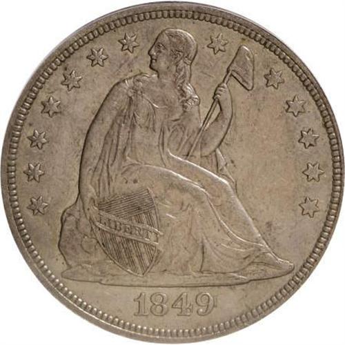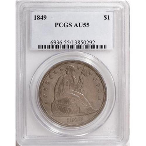 <B>1849 $1 AU55 PCGS.</B></I> PCGS Population (36/82). NGC Census: (31/108). Mintage: 62,600. Numismedia Wsl. Price for NGC/PCGS coin in AU55: $800. (#6936)<BR><BR><B>Coin Engraver:</B> Christian Gobrecht<BR><BR><b>Shipping:</b> Coins & Currency (<a target="_blank" href="http://www.heritageauctions.com/common/shipping.php">view shipping information</a>)