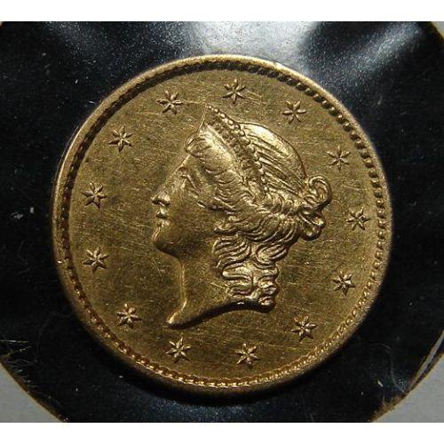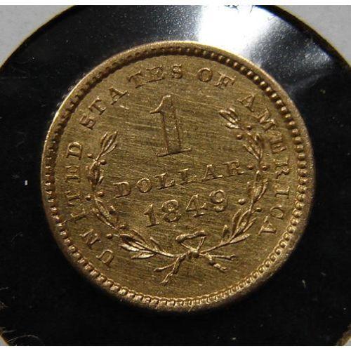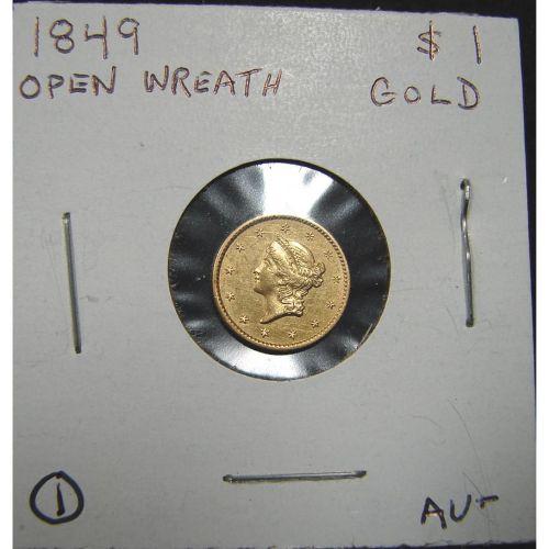1849 $1 U.S. LIBERTY GOLD COIN. Open Wreath. AU.