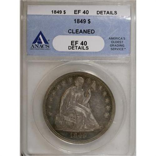 <B>1849 $1 --Cleaned--ANACS. XF40 Details.</B></I> NGC Census: (5/186). PCGS Population (21/214). Mintage: 62,600. Numismedia Wsl. Price for NGC/PCGS coin in XF40: $442. (#6936)<BR><BR><B>Coin Engraver:</B> Christian Gobrecht<BR><BR><b>Shipping:</b> Coins & Currency (<a target="_blank" href="http://www.heritageauctions.com/common/shipping.php">view shipping information</a>)