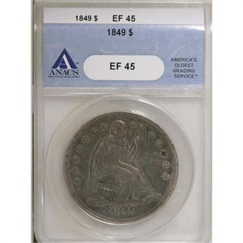 <B>1849 $1 XF45 ANACS.</B></I> . NGC Census: (19/167). PCGS Population (38/176). Mintage: 62,600. Numismedia Wsl. Price for NGC/PCGS coin in XF45: $497. (#6936)<BR><BR><B>Coin Engraver:</B> Christian Gobrecht<BR><BR><b>Shipping:</b> Coins & Currency (<a target="_blank" href="http://www.heritageauctions.com/common/shipping.php">view shipping information</a>)