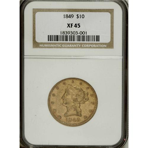 1849 $10 XF45 NGC. NGC Census: (156/413). PCGS Pop