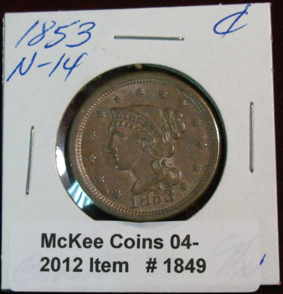 1849. 1853 U.S. Large Cent. Choice BU. Brown. N-14.