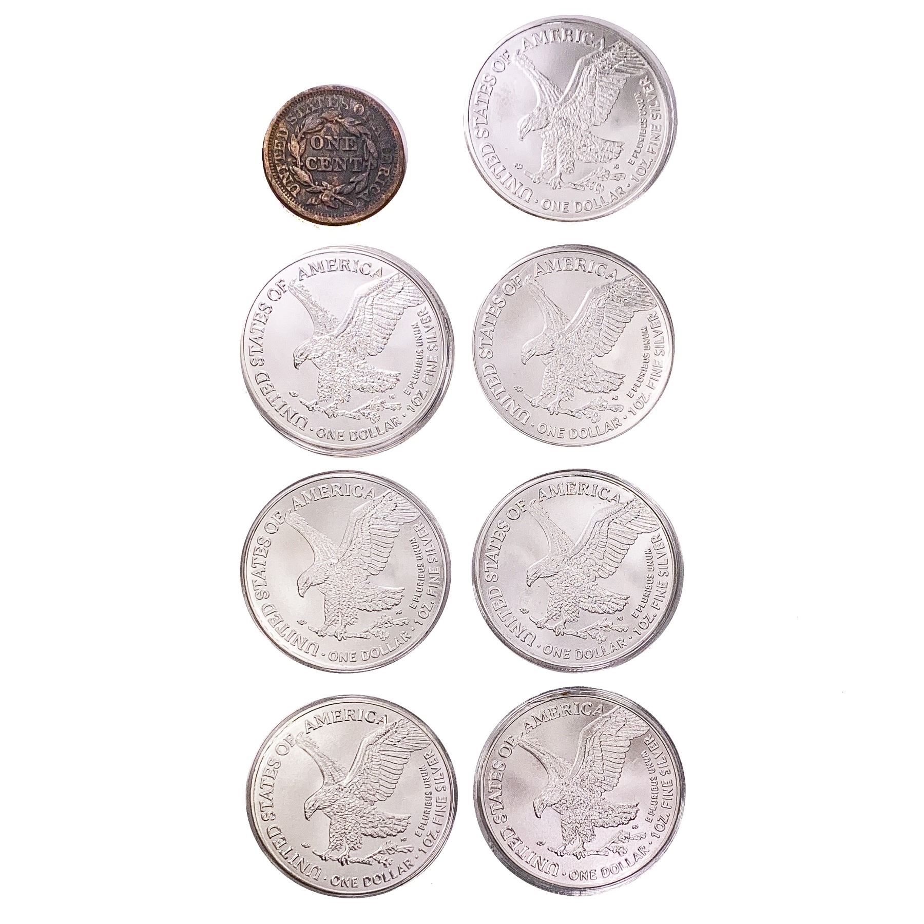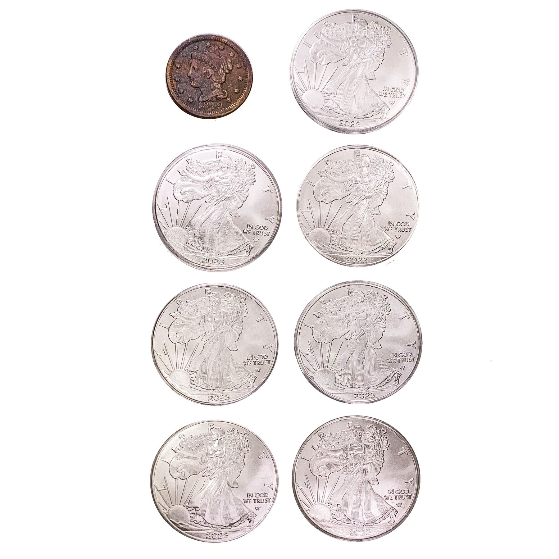 l. All non-certified coins and currency are guaranteed genuine, but are not guaranteed as to grade, since grading is a matter of opinion, an art and not a science, and therefore the description rendered by GSA or any third-party grading service may not agree with the opinion of others (including trained experts), and the same expert may not grade the same item with the same grade at two different times. GSA may, but is not obligated to, express an opinion as to non-certified numismatic items, in GSA's opinion, or by its employees' experience and the current interpretation of the American Numismatic Association's standards as of the date the catalog was prepared. There is no guarantee or warranty expressed or implied that the grading opinions utilized by GSA, if any, will meet the standards of any grading service at any time in the future.
