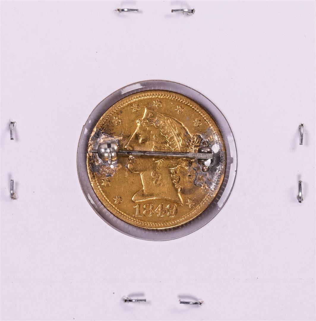One 1849 $5 Liberty Head Half Eagle Love Token Coin Pin.
