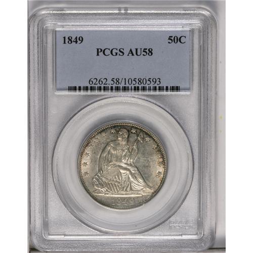 1849 50C AU58 PCGS. Lustrous and well detailed, with f 1849
