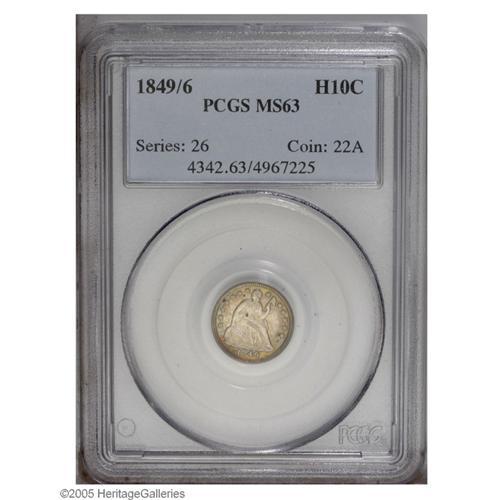 1849/6 H10C MS63 PCGS. The underdigit is easily visibl 1849/6[H10C] MS63 PCGS.