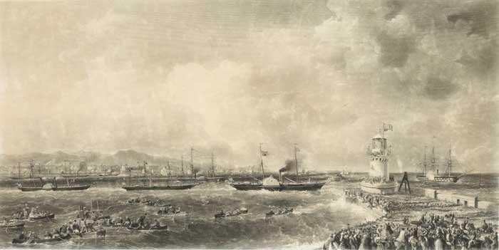 1849 (August) Charles Mottram (1802-1876) The Departure of The Queen and The Royal Squadron from Kingstown - a large engraving