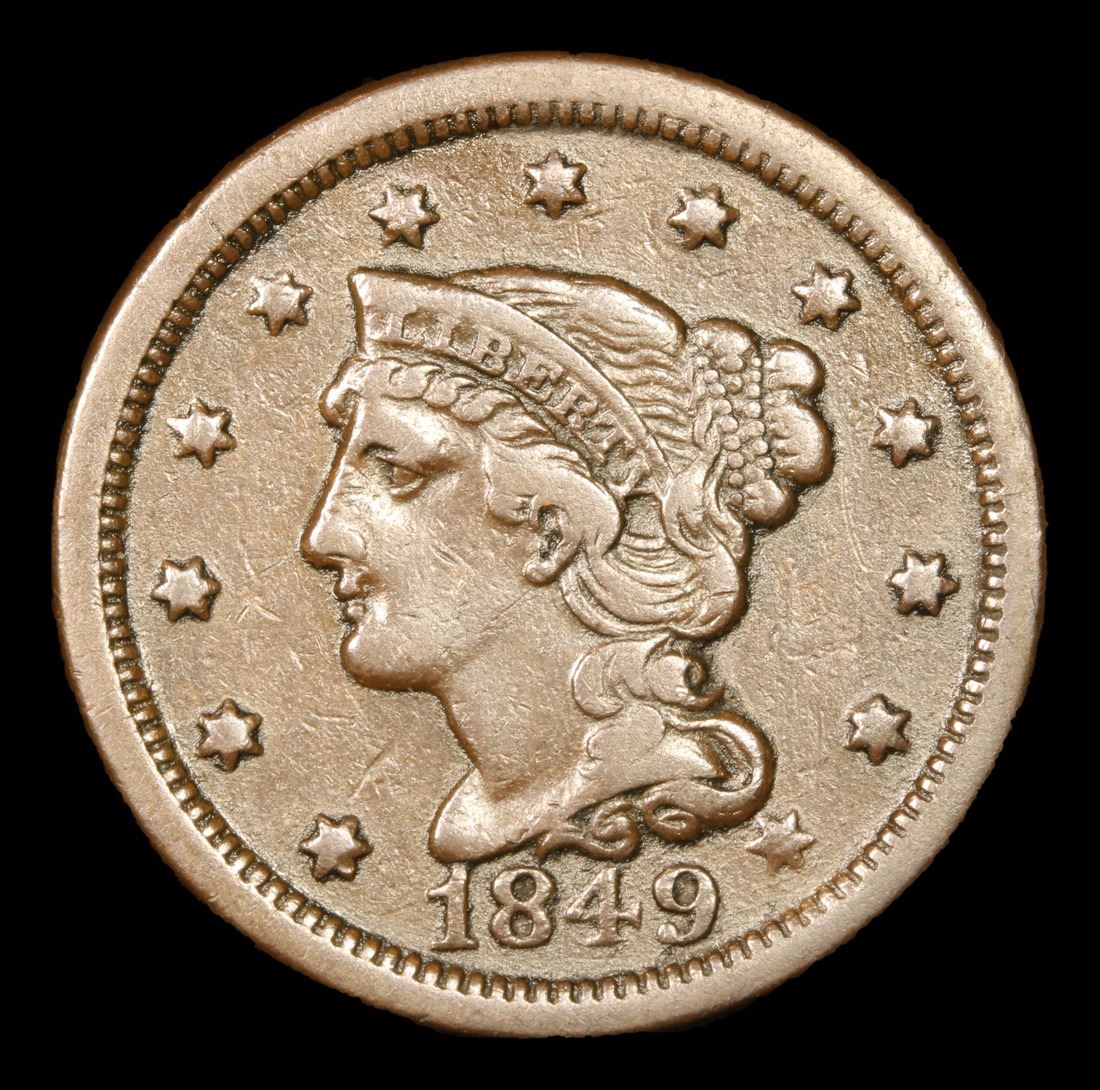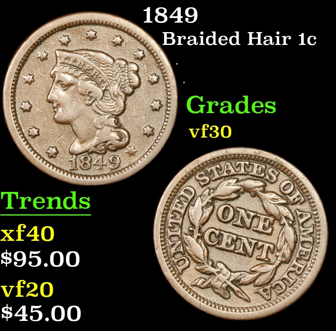 1849 . . Braided Hair Large Cent 1c Grades vf++.