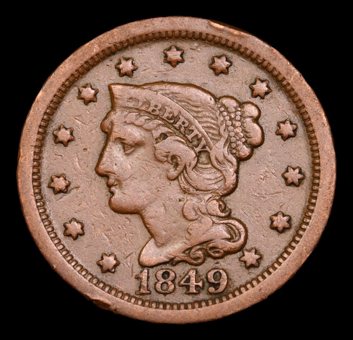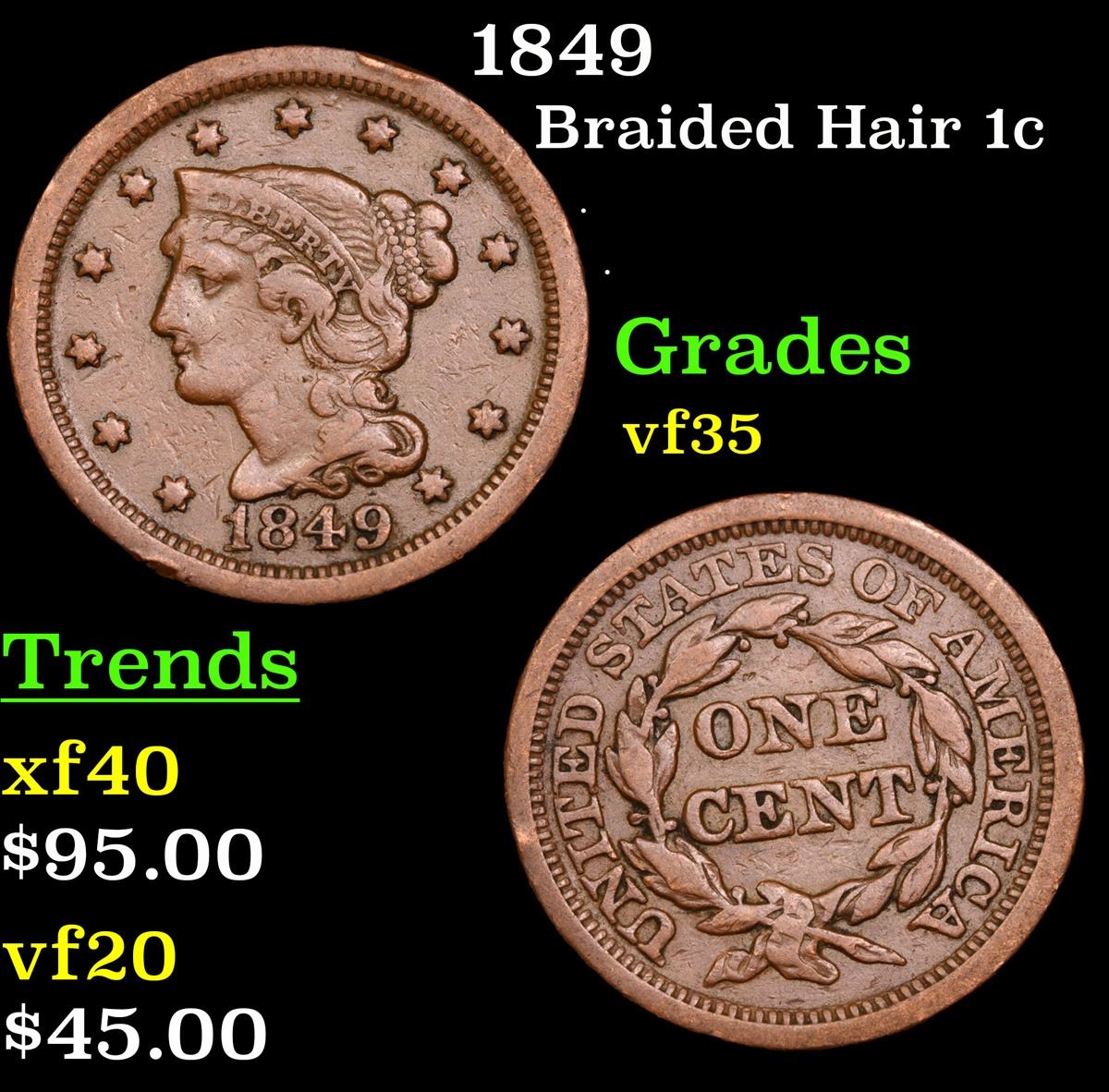 1849 . . Braided Hair Large Cent 1c Grades vf++.