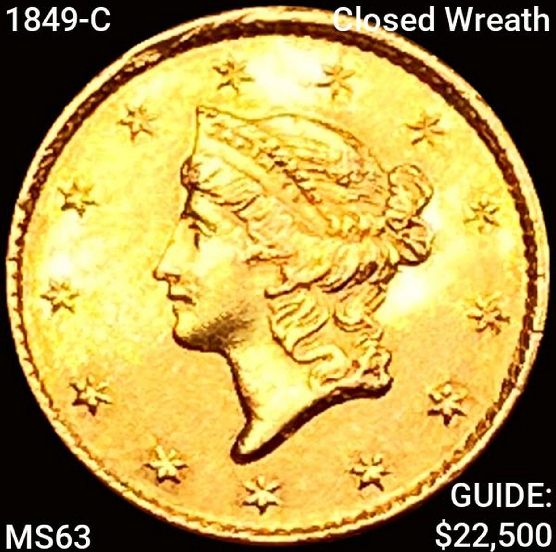 1849-C Closed Wreath Rare Gold Dollar CHOICE BU