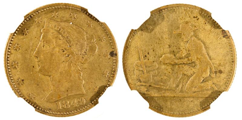 Unknown. Graded fine, details damaged by NGC. Appears to be different metallic composition. Fauver 305. Lib 1, Cal 1.
