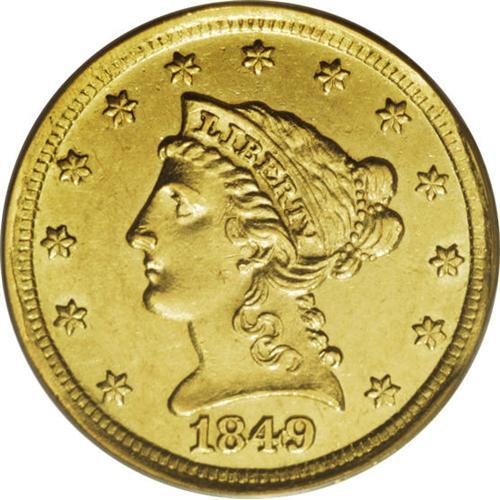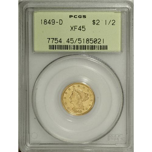 1849-D $2 1/2 XF45 PCGS. A rare issue in Mint State, a