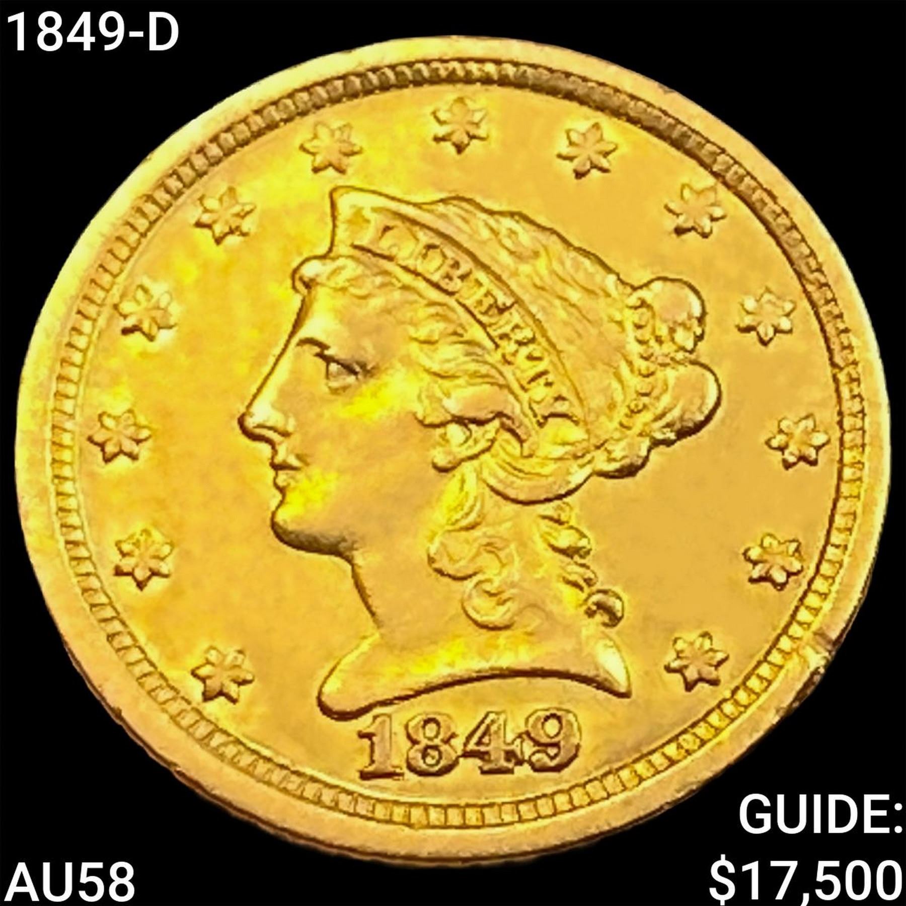 1849-D $2.50 Gold Quarter Eagle CHOICE AU