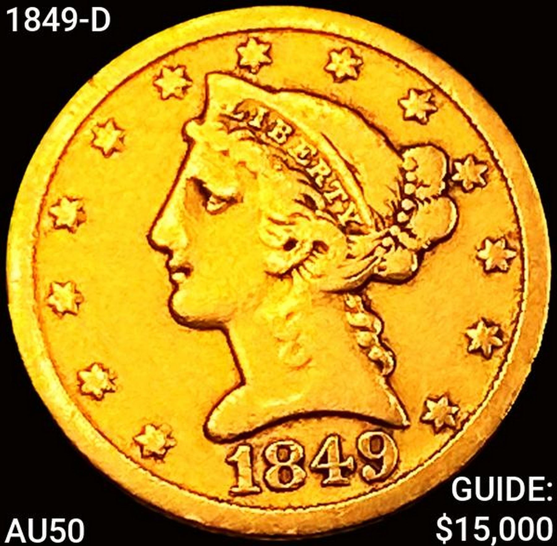 1849-D $5 Gold Half Eagle CLOSELY UNCIRCULATED