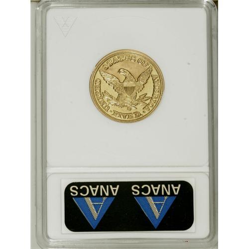 <B>1849-D $5 --Tooled, Cleaned--ANACS. AU55 Details.</B></I> Variety 22-L. The obverse left (facing) field and the reverse field above the eagle have been heavily tooled in a misguided improvement attempt. A light die crack joins the E D in the denomination with the last A in AMERICA, while a second crack joins the bottoms of AMER with the wing tip and rim.<BR><BR><b>Shipping:</b> Coin/Currency (<a target="_blank" href="http://www.heritageauctions.com/common/shipping.php">view shipping information</a>)