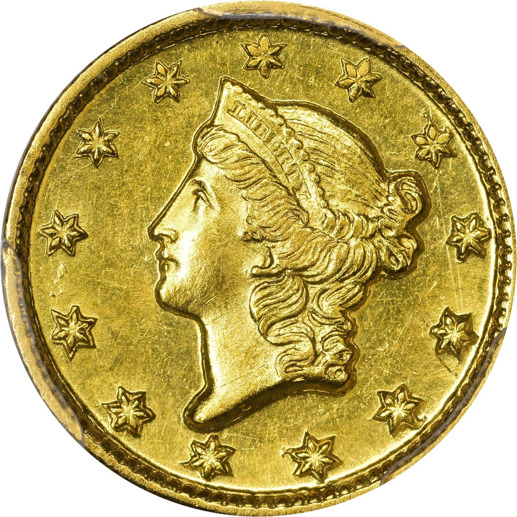Header: Lustrous Mint State 1849-D Gold $1