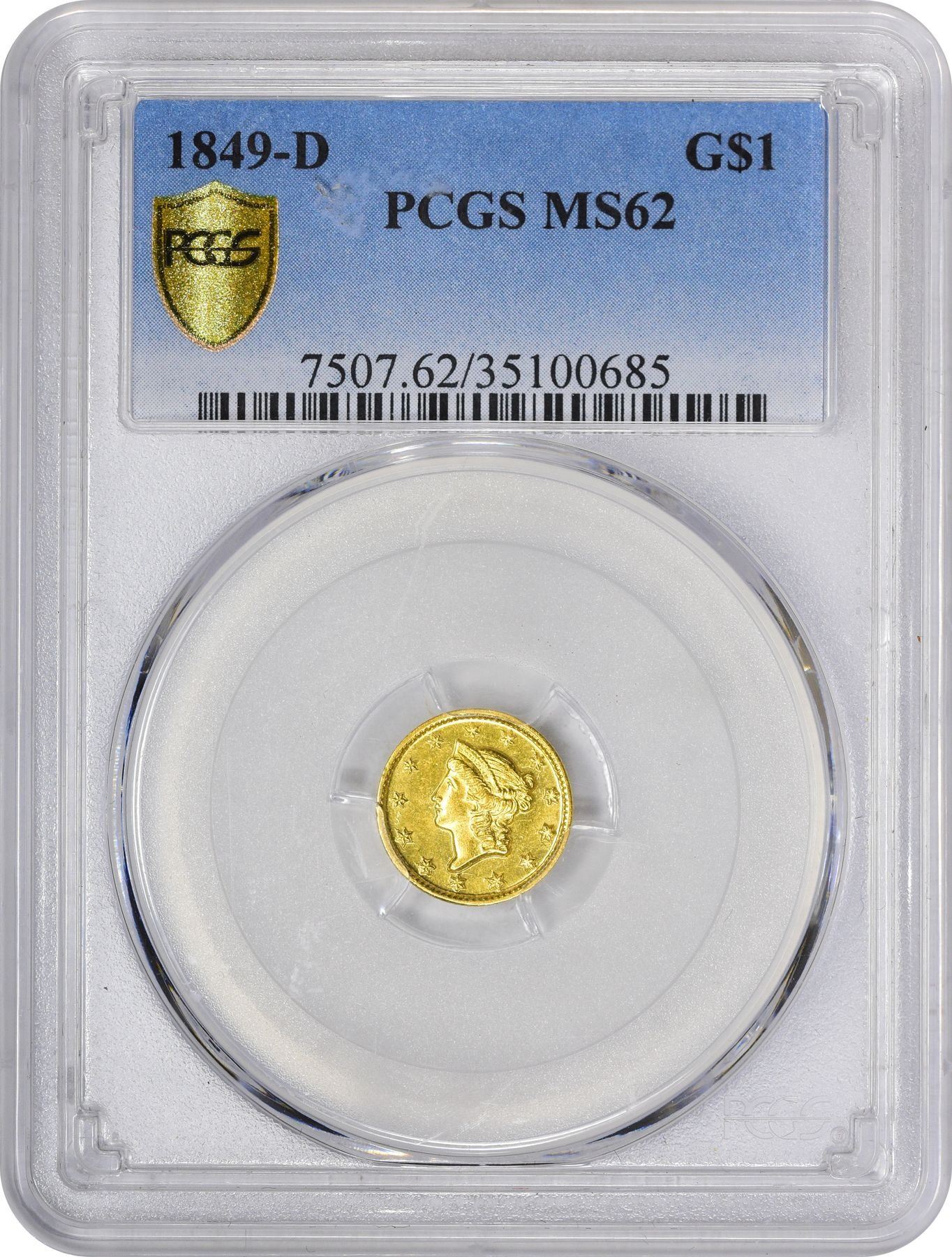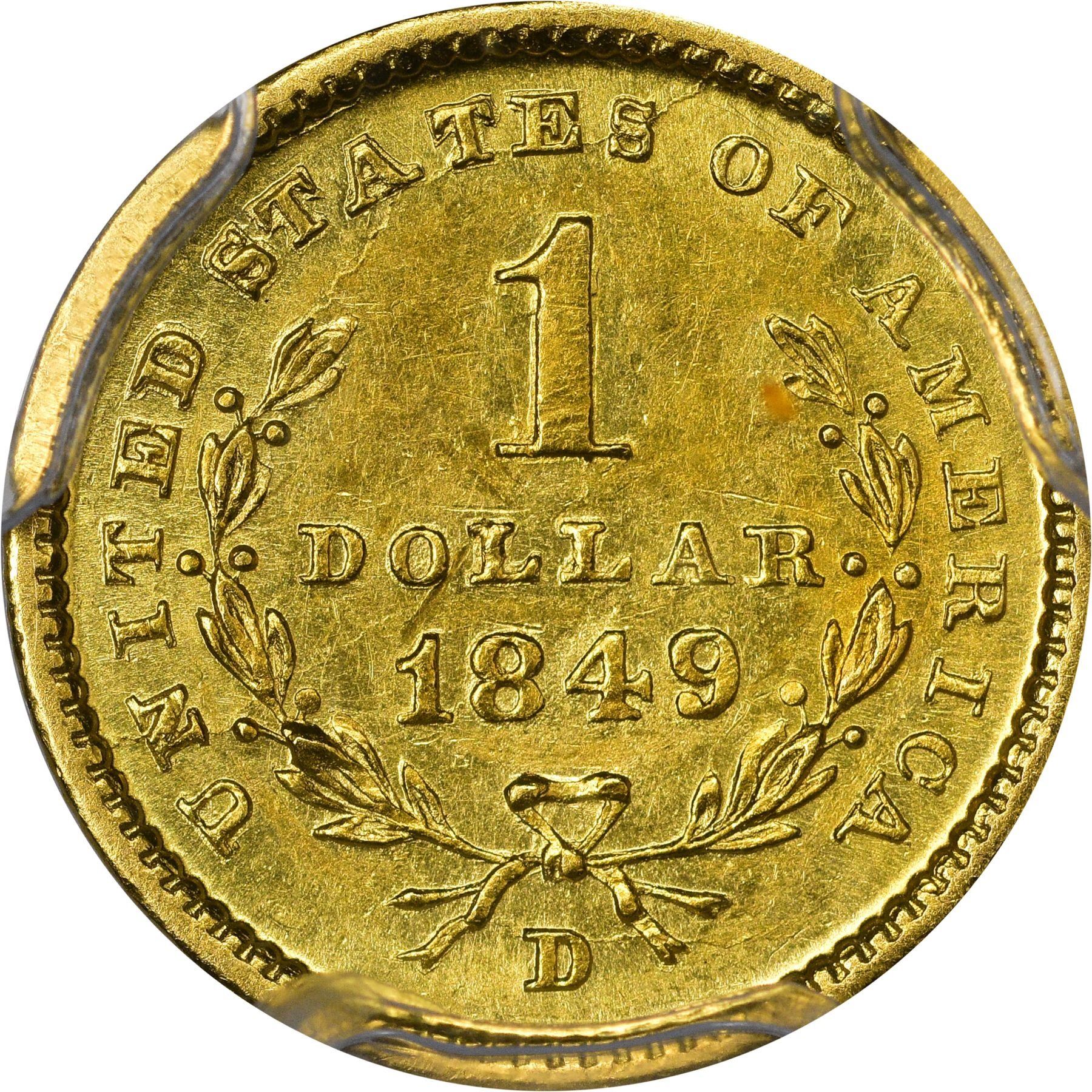 Title: 1849-D Gold $1. Winter 1-B. MS-62 PCGS.