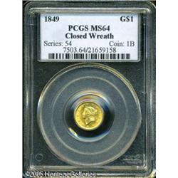 <B>1849 G$1 Closed Wreath MS64 PCGS.</B></I> Large Head, With L. Sharply struck, with bright yellow-gold patina over lustrous, minimally abraded surfaces. Population: 31 in 64, 12 finer (1/05). Lot:7455