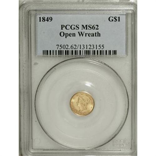 1849 G$1 Open Wreath MS62 PCGS. PCGS Population (2