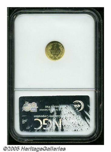 <B>1849<G$1> Open Wreath MS63 NGC.</B></I> Small Head, with L. A star at 5 o'clock is widely repunched. A lustrous and intricately struck piece that has the look of a higher grade, although thorough evaluation finds a couple of subtle, hairline-thin marks on the portrait.