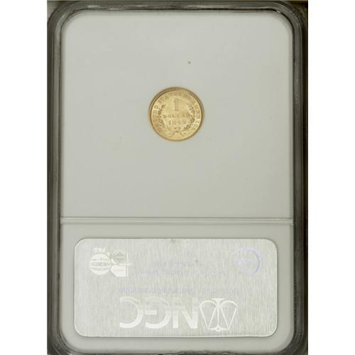 <B>1849 G$1 Open Wreath MS64 NGC.</B></I> The fresh, frosty lemon-gold surfaces of this diminutive near-Gem have hardly any distracting marks. Above-average definition on the devices only enhances the eye appeal.<BR><BR><b>Shipping:</b> Coin/Currency (<a target="_blank" href="http://www.heritageauctions.com/common/shipping.php">view shipping information</a>)