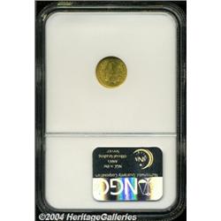 <B>1849<G$1> Open Wreath MS64 NGC.</B></I> Large head, with L. A boldly struck and lustrous near-Gem that has no mentionable marks. A lengthy die crack (as made) wanders across the central reverse. The Open Wreath was produced for less than one year, and its status as a type coin is underappreciated. <BR><BR><B>Important notice:</B> Heritage usually auctions material at the rate of 200-250 lots per hour. On some occasions eBay Live bid software or the Internet may not be able to keep up with the pace of the auction. We recommend placing a realistic absentee bid now as insurance to avoid disappointment. Occasionally the auctioneer may eliminate or reject an eBay Live bid, and the auctioneer may also reopen a lot after the close of the eBay live bidding (usually because we missed an audience bid), and may reject your bid even if it shows you as the winning bidder. By bidding via eBay Live, you agree that Heritage may award the lot to another bidder at its sole discretion under the circumstances described above or any other reasonable circumstances. Since eBay bids are not shown to us until we open the lot on the floor, we treat those bids just like floor bids. In most cases the floor responds before the eBay bid is presented to us, due to Internet lag time, so for consistency we have made it a policy that floor bids are always considered first over tie eBay live bids. Also please note that all Heritage lots purchased through eBay Live carry a 20% Buyer's Premium. Please make sure you read the Terms and Conditions before you bid.