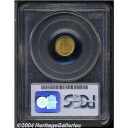 <table><tbody><tr><td><table> <TR><TD width="100%"><TABLE cellSpacing=1 cellPadding=3 width="100%" border=0><TBODY><TR><TD width="100%" bgColor=#79735c><FONT face=arial color=#ffffff size=3><B>Description</B> </FONT></TD></TR><TR><TD width="100%" bgColor=#ffffff><FONT face=arial size=2><B>1849 G$1 Open Wreath MS64 PCGS.</B></I> Large head. With L. The E in AMERICA is boldly repunched, an unusual characteristic on a gold coin from this era. A sharply struck near-Gem with carefully preserved apricot-gold surfaces. The dies are slightly rotated counterclockwise. </FONT></TD></TR></TBODY></TABLE></TD></TR></TBODY></TABLE><BR><A name=PricesRealized></A><TABLE cellSpacing=0 cellPadding=0 width="100%" bgColor=#000000 border=0><TBODY><TR><TD width="100%"><TABLE cellSpacing=1 cellPadding=3 width="100%" border=0><TBODY><TR><TD width="100%" bgColor=#79735c><A name=PR><FONT face=arial color=#ffffff size=3><B>Previous Prices from Heritage Auctions</B> </FONT></A></TD></TR><TR><TD bgColor=#f6f6ed><TABLE cellSpacing=0 cellPadding=0 width="100%" border=1><TBODY><TR><TD align=middle width="33%"><B>Date</B></TD><TD align=middle width="33%"><B>Service</B></TD><TD align=middle width="33%"><B>Price</B></TD></TR><TR bgColor=whitesmoke><TD width="33%"><B>09/09/2003</B></TD><TD width="33%">PCGS</TD><TD width="33%">$1,841.15</TD></TR><TR bgColor=whitesmoke><TD width="33%"><B>08/27/2002</B></TD><TD width="33%">NGC</TD><TD width="33%">$1,840.00</TD></TR><TR bgColor=whitesmoke><TD width="33%"><B>11/07/2003</B></TD><TD width="33%">PCGS</TD><TD width="33%">$1,840.00</TD></TR><TR bgColor=whitesmoke><TD width="33%"><B>05/03/2003</B></TD><TD width="33%">PCGS</TD><TD width="33%">$3,680.00</TD></TR><TR bgColor=whitesmoke><TD width="33%"><B>03/01/2003</B></TD><TD width="33%">PCGS</TD><TD width="33%">$1,840.00</TD></TR><TR bgColor=whitesmoke><TD width="33%"><B>01/11/2003</B></TD><TD width="33%">NGC</TD><TD width="33%">$2,530.00</TD></TR><TR bgColor=whitesmoke><TD width="33%"><B>11/23/2002</B></TD><TD width="33%">NGC</TD><TD width="33%">$2,070.00</TD></TR><TR bgColor=whitesmoke><TD width="33%"><B>06/02/2001</B></TD><TD width="33%">PCGS</TD><TD width="33%">$1,782.50</TD></TR><TR bgColor=whitesmoke><TD width="33%"><B>02/23/2001</B></TD><TD width="33%">PCGS</TD><TD width="33%">$1,265.00</TD></TR><TR bgColor=whitesmoke><TD width="33%"><B>01/07/2000</B></TD><TD width="33%">NGC</TD><TD width="33%">$1,322.50</TD></TR><TR bgColor=whitesmoke><TD width="33%"><B>08/07/1998</B></TD><TD width="33%">NGC</TD><TD width="33%">$3,565.00</TD></TR><TR bgColor=whitesmoke><TD width="33%"><B>06/06/1997</B></TD><TD width="33%">PCGS</TD><TD width="33%">$1,897.50</TD></TR><TR bgColor=whitesmoke><TD width="33%"><B>04/08/1994</B></TD><TD width="33%">NGC</TD><TD width="33%">$1,870.00</TD></TR><TR bgColor=whitesmoke><TD width="33%"><B>10/02/2000</B></TD><TD width="33%">PCGS</TD><TD width="33%">$2,530.00</TD></TR><TR bgColor=whitesmoke><TD width="33%"><B>01/01/2001</B></TD><TD width="33%">PCGS</TD><TD width="33%">$2,070.00</TD></TR><TR bgColor=whitesmoke><TD width="33%"><B>10/01/1999</B></TD><TD width="33%">PCGS</TD><TD width="33%">$2,990.00</TD></TR><TR bgColor=whitesmoke><TD width="33%"><B>01/01/1997</B></TD><TD width="33%">PCGS</TD><TD width="33%">$2,420.00</TD></TR><TR bgColor=whitesmoke><TD width="33%"><B>08/01/1999</B></TD><TD width="33%">PCGS</TD><TD width="33%">$2,415.00</TD></TR></TBODY></TABLE></TD></TR><TR><TD bgColor=#ffffff><FONT face=arial size=1 ?>PLEASE NOTE: All prices realized reflect the final hammer price PLUS the buyer's premium in auctions that charge a buyer's premium. Each item has a notation at the top of the listing indicating whether that lot included a buyer's premium. Example: A item that sells with a final hammer price of $100 and a 20% buyer's premium will display with a price realized of $120. All information listed is intended to be as accurate as possible, but errors are possible. Please use this guide carefully and inform us of any inaccuracies. </FONT></TD></TR></TBODY></TABLE></TD></TR></TBODY></TABLE><BR><TABLE cellSpacing=0 cellPadding=0 width="100%" bgColor=#000000 border=0><TBODY><TR><TD width="100%"><TABLE cellSpacing=1 cellPadding=3 width="100%" border=0><TBODY><TR><TD width="100%" bgColor=#79735c colSpan=6><FONT face=arial color=#ffffff size=3><B>Price Guide*</B> </FONT></TD></TR><TR bgColor=#f6f6ed><TD align=middle><B>Grade</B> </TD><TD align=middle><B>Coin World<BR>(Trends)</B> </TD><TD align=middle><B>Numismedia<BR>Retail</B> </TD><TD align=middle><B>Numismedia<BR>Wholesale</B> </TD><TD align=middle><B>Coin<BR>Universe</B> </TD><TD align=middle><B>Heritage<BR>Value Index</B> </TD></TR><TR bgColor=#ffffff><TD align=middle>63</TD><TD align=right>$1,800.00</TD><TD align=right>---</TD><TD align=right>$1,265.00</TD><TD align=right>$1,450.00</TD><TD align=right>$1,138.75</TD></TR><TR style="FONT-WEIGHT: bold" bgColor=#cccfdd><TD align=middle>64</TD><TD align=right>$3,000.00</TD><TD align=right>---</TD><TD align=right>$1,775.00</TD><TD align=right>$2,250.00</TD><TD align=right>$1,656.50</TD></TR><TR bgColor=#ffffff><TD align=middle>65</TD><TD align=right>$6,750.00</TD><TD align=right>---</TD><TD align=right>$3,825.00</TD><TD align=right>$6,000.00</TD><TD align=right>$4,048.75</TD></TR><TR bgColor=#ffffff><TD colSpan=6><FONT size=1>*All information listed is intended to be as accurate as possible, but errors are possible. No item may be returned or refused based on this information which is provided as a service to our customers. You should contact each pricing source directly to determine the accuracy of this information. </FONT></TD></TR></TBODY></TABLE></TD></TR></TBODY></TABLE><BR><TABLE cellSpacing=0 cellPadding=0 width="100%" bgColor=#000000 border=0><TBODY><TR><TD width="100%"><TABLE cellSpacing=1 cellPadding=3 width="100%" border=0><TBODY><TR><TD width="100%" bgColor=#79735c><FONT face=arial color=#ffffff size=3><B>Population Guide</B> </FONT></TD></TR><TR bgColor=#ffffff><TD align=middle><!-- Begin Output of