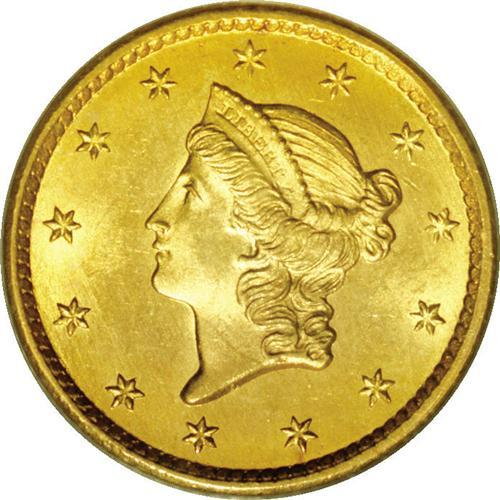 <B>1849 G$1 Open Wreath MS65 PCGS.</B></I> Large Head, With L. Razor-sharp except for the dentils, with striated fields that impart a dazzling semi-reflective sheen. Both sides are cloaked in appealing orange-gold patina which easily compensates for a few wispy blemishes in the fields. Although widely saved, this first year Gold Dollar issue is seldom found finer. Population: 40 in 65, 15 finer (12/05).