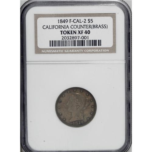 1849 Game Counter XF40 NGC. F-CAL-2 $5. Struck in bra