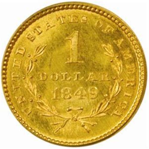 1849 Gold Dollar. Open Wreath, With L, Large Head. MS-66 (PCGS).