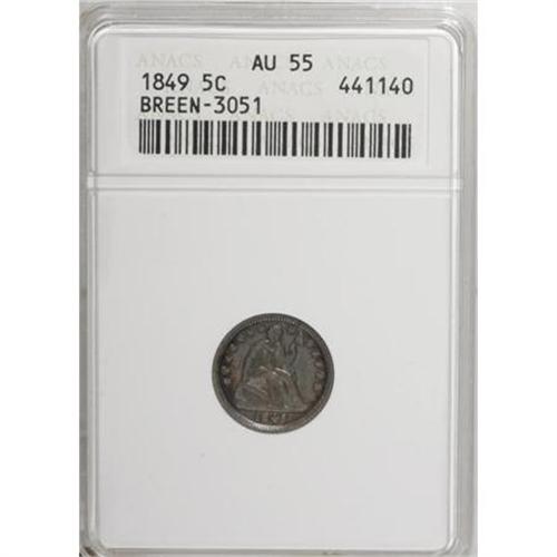 <B>1849/8 H10C AU55 ANACS.</B></I> Breen-3051. NGC Census: (3/78). PCGS Population (5/49). Mintage: 1,309,000. (#4341)<BR><BR><B>Coin Engraver:</B> Christian Gobrecht<BR><BR><b>Shipping:</b> Coins & Currency (<a target="_blank" href="http://www.heritageauctions.com/common/shipping.php">view shipping information</a>)