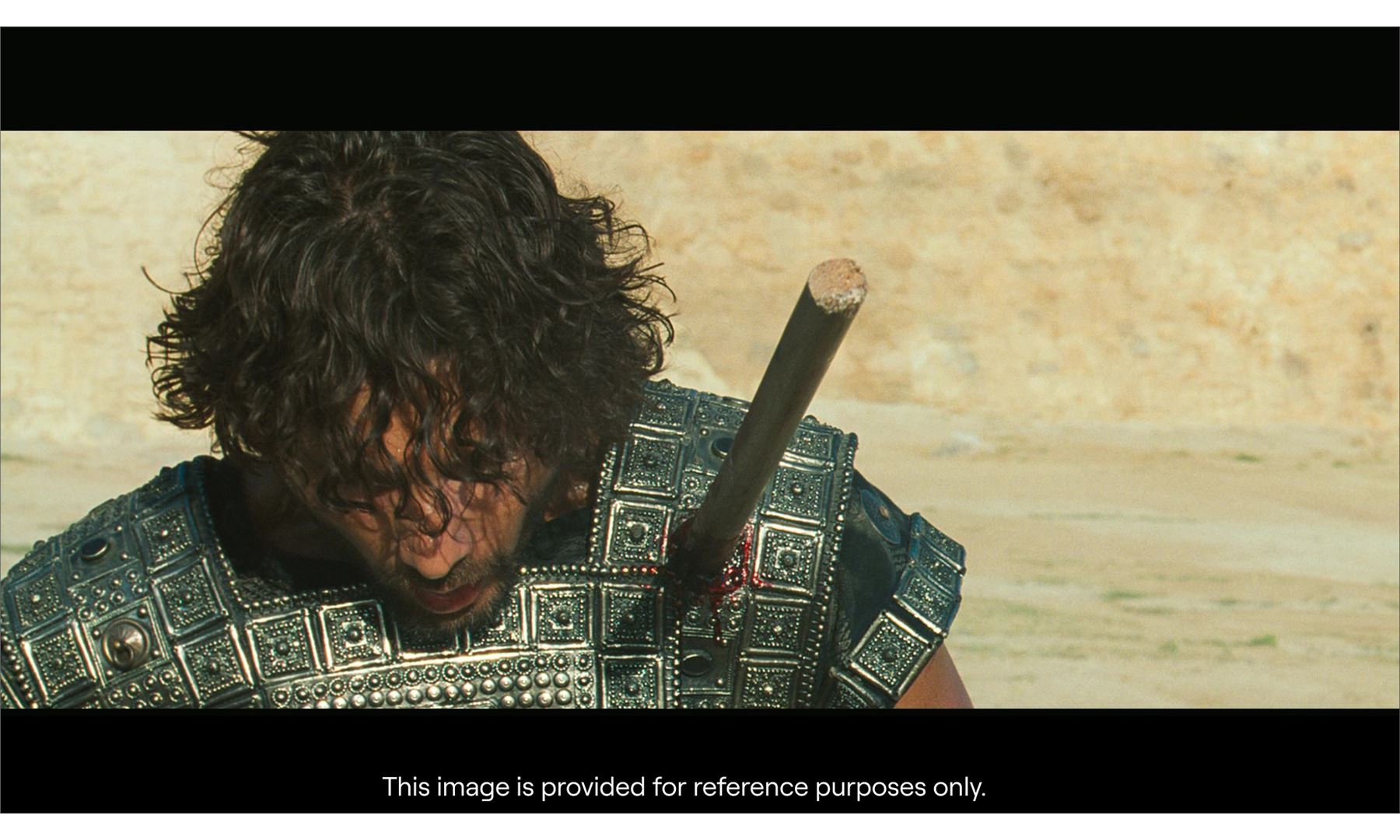 TROY (2004) - Hector's Distressed Body Double Death Armor - Hector's distressed body double death armor from Wolfgang Petersen's Troy. To avenge the death of his cousin Patroclus (Garrett Hedlund), Achilles plunged his spear into Hector's (Eric Bana) left shoulder, killing him and ultimately turning the tide of the Trojan War in favor of the Spartans in the climactic battle.