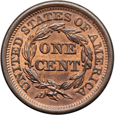 1849 N-22 R1. MS-64. Frosty bright original mint red fading to chocolate and steel brown, more than a third of the original color remaining. Virtually pristine surfaces; a small spot of darker olive toning in the dentils at star 2 is the only notable mark. M-LDS, die state c. A very attractive example of a date that seldom comes with this much original mint red.