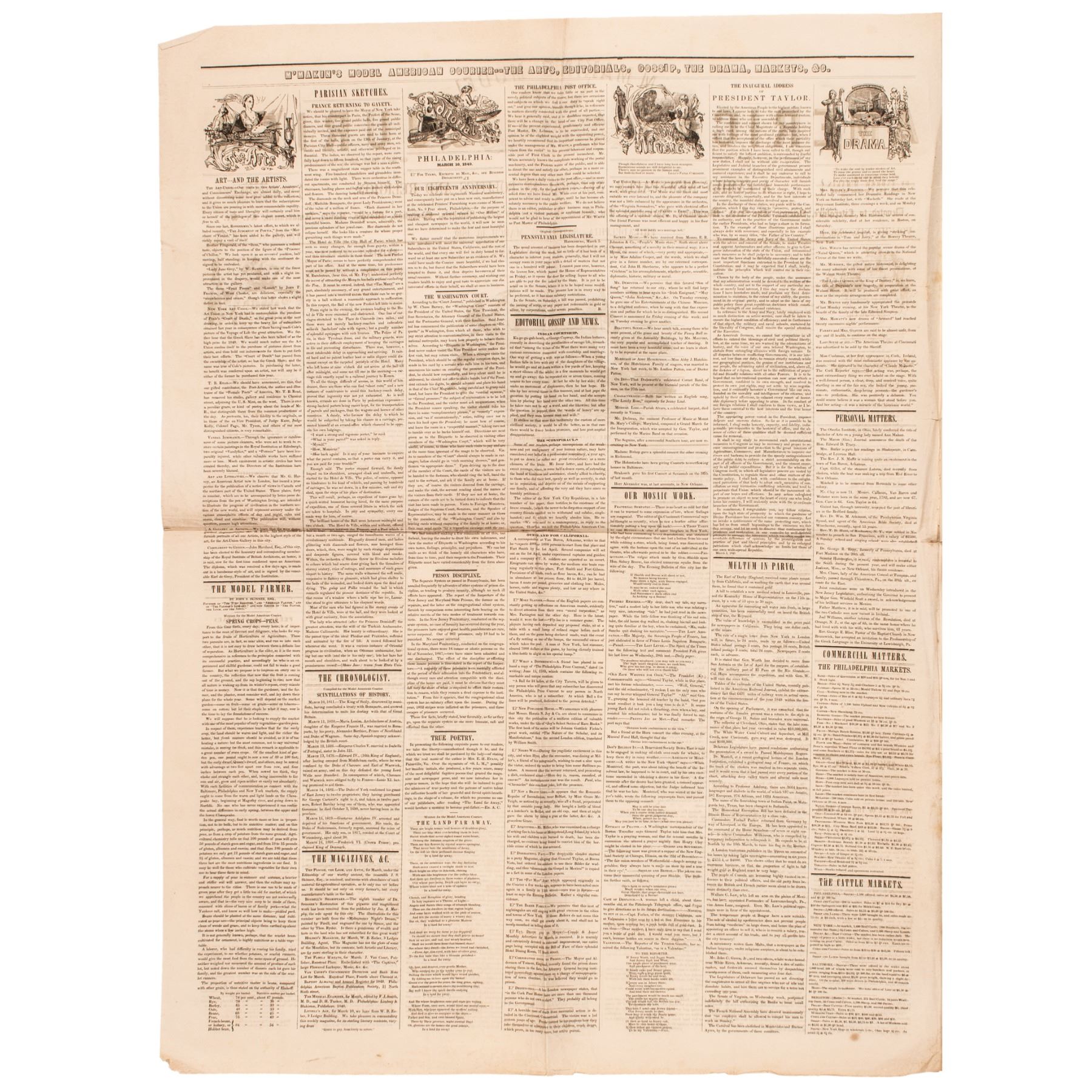 1849 Philadelphia Newspaper With a full Printing of President Zachary Taylor's Inaugural Address, his Cabinet, etc.