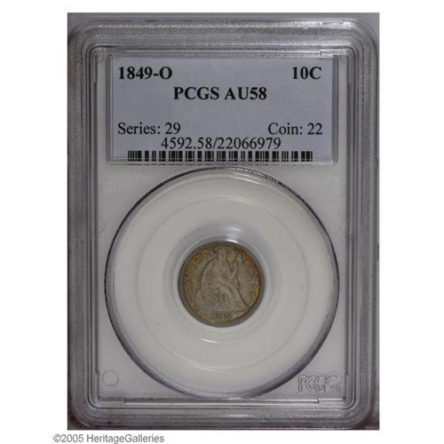 1849-O 10C AU58 PCGS. The strike is decent, with some 1849-O[10C] AU58 PCGS.