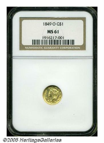 <B>1849-O<G$1> MS61 NGC.</B></I> Luster is bright and extensive, and the strike is decent for the branch mint. A late obverse die state with numerous bold die cracks (as produced) near the margins.