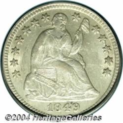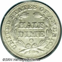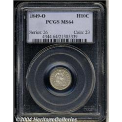 <B>1849-O<H10C> MS64 PCGS.</B></I> The 1849-O is a very elusive issue in all grades with only 140,000 pieces produced. Breen, who simply called this issue "rare," suggested that some of this already low mintage may have actually been dated 1848. Half Dime specialist Al Blythe went further by stating, "...specimens in higher grades (AU and above) are very scarce. Usually found in lower grades." In Mint State he rates the '49-O as a low R.6. This extraordinary '49-O has bright, satiny, silver-gray surfaces that emit a soft, lustrous glow. The devices are adequately struck. A couple of small marks traverse the E and R of LIBERTY on the shield ribbon. Population: 11 in 64, 0 finer (3/04). <BR><BR><B>Important notice:</B> Heritage usually auctions material at the rate of 200-250 lots per hour. On some occasions eBay Live bid software or the Internet may not be able to keep up with the pace of the auction. We recommend placing a realistic absentee bid now as insurance to avoid disappointment. Occasionally the auctioneer may eliminate or reject an eBay Live bid, and the auctioneer may also reopen a lot after the close of the eBay live bidding (usually because we missed an audience bid), and may reject your bid even if it shows you as the winning bidder. By bidding via eBay Live, you agree that Heritage may award the lot to another bidder at its sole discretion under the circumstances described above or any other reasonable circumstances. Since eBay bids are not shown to us until we open the lot on the floor, we treat those bids just like floor bids. In most cases the floor responds before the eBay bid is presented to us, due to Internet lag time, so for consistency we have made it a policy that floor bids are always considered first over tie eBay live bids. Also please note that all Heritage lots purchased through eBay Live carry a 20% Buyer's Premium. Please make sure you read the Terms and Conditions before you bid. </span></font></tr></table></td></tr></table>