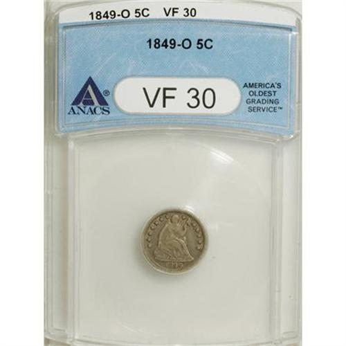 <B>1849-O H10C VF30 ANACS.</B></I> NGC Census: (3/39). PCGS Population (3/31). Mintage: 140,000. Numismedia Wsl. Price for NGC/PCGS coin in VF30: $330. (#4344)<BR><BR><b>Shipping:</b> Coins & Currency (<a target="_blank" href="http://www.heritageauctions.com/common/shipping.php">view shipping information</a>)