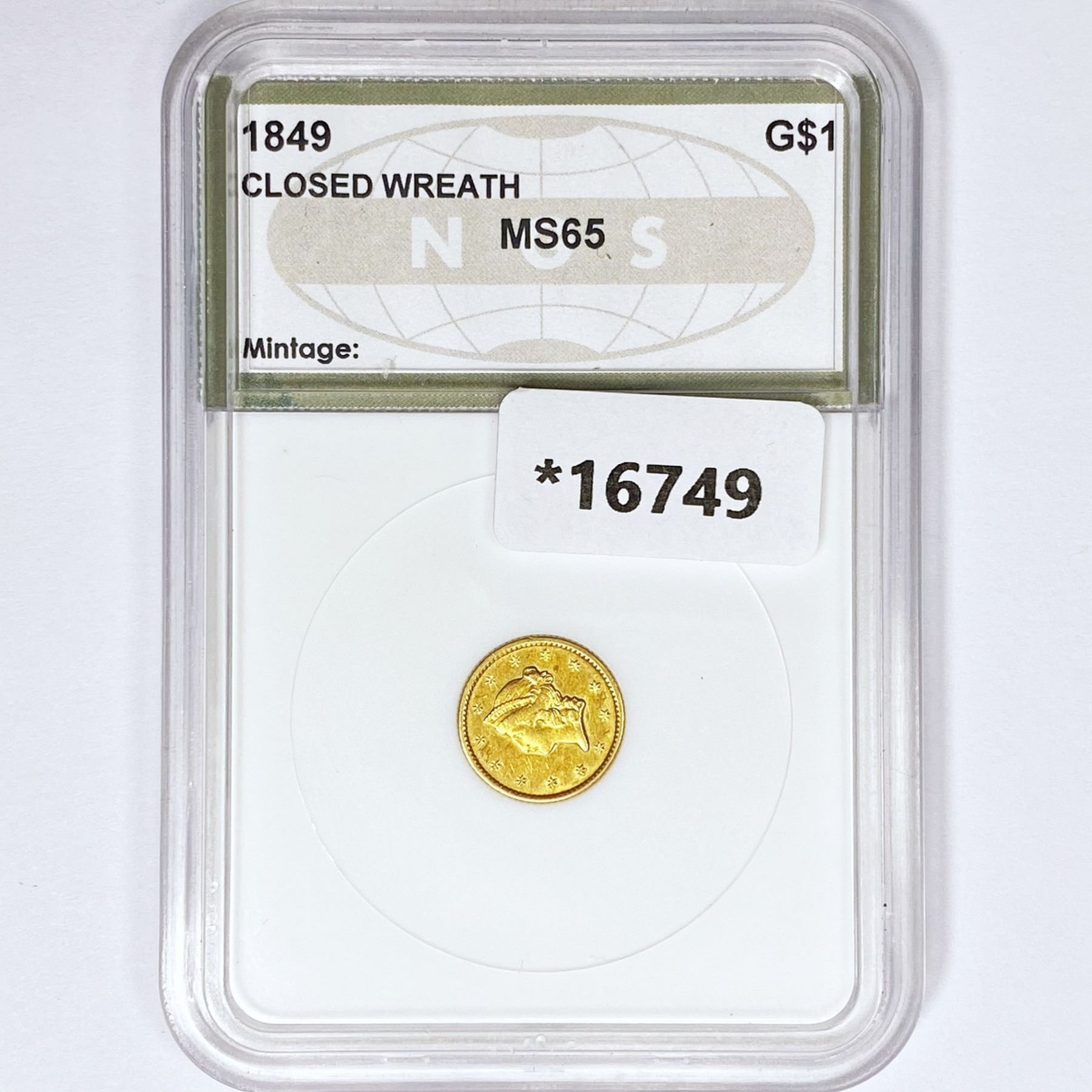 1849 Rare Gold Dollar NGS MS65 Closed Wreath