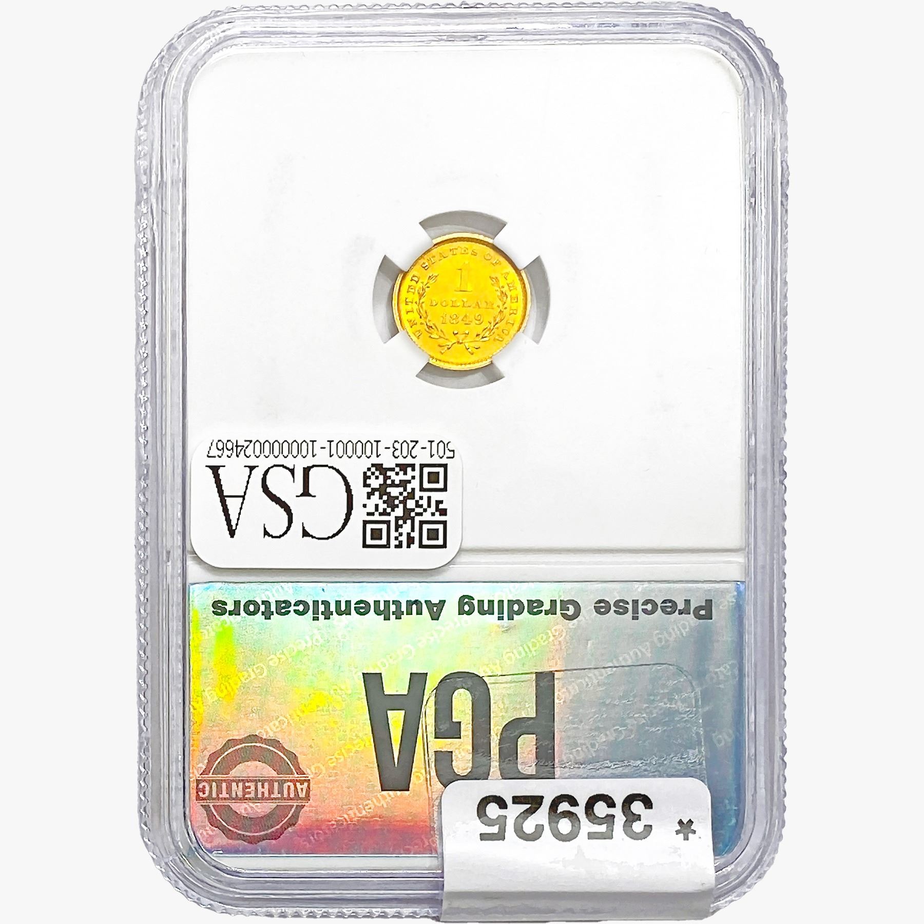 1849 Rare Gold Dollar PGA MS62+ NO L