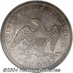 <table><tr><td><table><tr><td>1849 S$1 MS63 NGC. The 1849 is a scarcer issue from the 1840s, but it is one that can be located in Uncirculated condition once in a while. This piece has the often-seen semi-prooflikeness in the fields with a multiple overlay of mottled, deep, multicolored toning on each side. Sharply defined throughout, the depth of toning conceals the numerous small abrasions that are scattered over both obverse and reverse. <BR><BR><B>Important notice:</B> Heritage usually auctions material at the rate of 200-250 lots per hour. On some occasions eBay Live bid software or the Internet may not be able to keep up with the pace of the auction. We recommend placing a realistic absentee bid now as insurance to avoid disappointment. Occasionally the auctioneer may eliminate or reject an eBay Live bid, and the auctioneer may also reopen a lot after the close of the eBay live bidding (usually because we missed an audience bid), and may reject your bid even if it shows you as the winning bidder. By bidding via eBay Live, you agree that Heritage may award the lot to another bidder at its sole discretion under the circumstances described above or any other reasonable circumstances. Since eBay bids are not shown to us until we open the lot on the floor, we treat those bids just like floor bids. In most cases the floor responds before the eBay bid is presented to us, due to Internet lag time, so for consistency we have made it a policy that floor bids are always considered first over tie eBay live bids. Also please note that all Heritage lots purchased through eBay Live carry a 20% Buyer's Premium. Please make sure you read the Terms and Conditions before you bid. <BR><BR><B>IMPORTANT ANNOUNCEMENT ABOUT RESERVES:</B> Heritage now divulges all reserves on its web site 7 days before every auction. If you want to know whether the reserve on this lot has been met, and if not, what the reserve amount is, please visit this lot page on the HeritageCoin.com web site, or email: bid@HeritageGalleries.com </span></font></td></tr></table></td></tr></table>