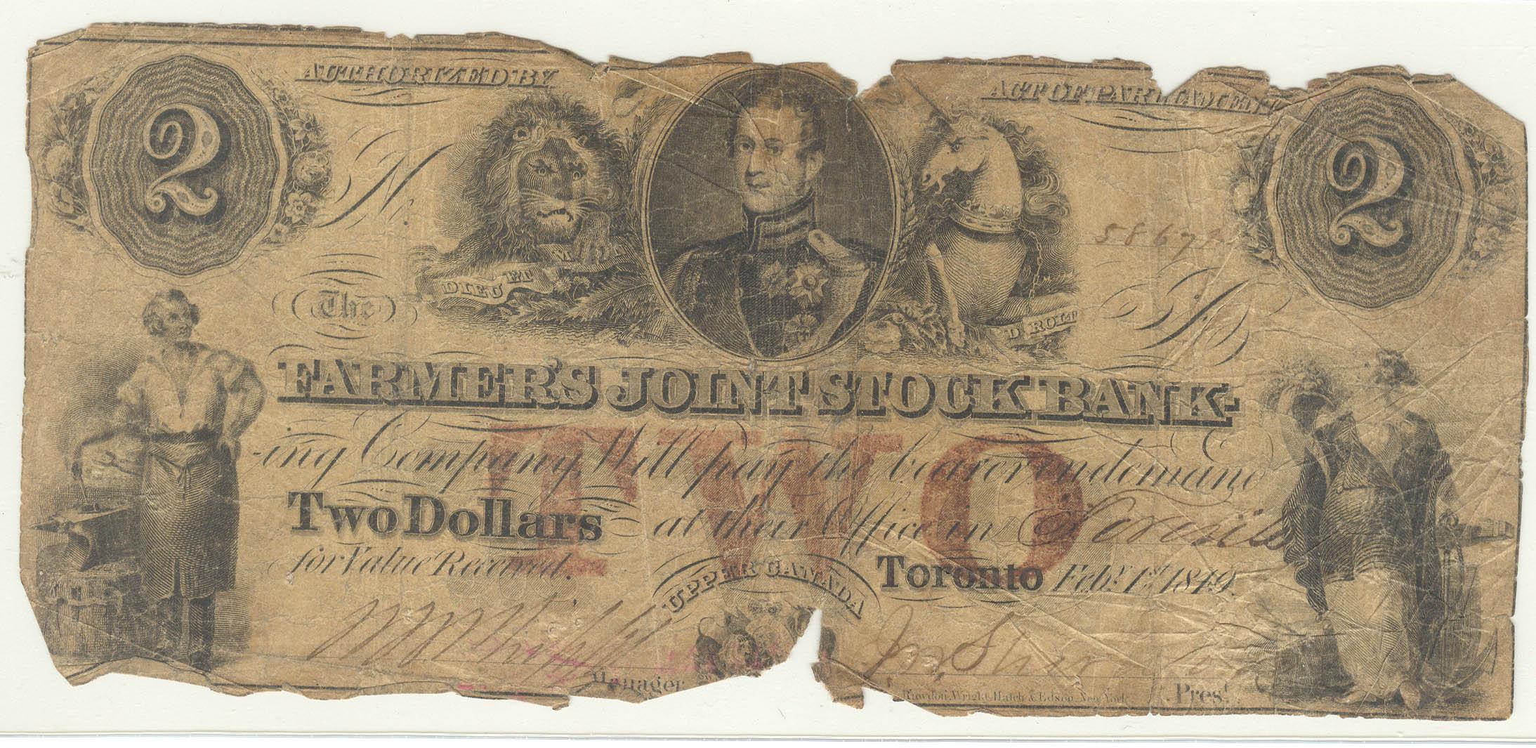 1849 Two Dollars Farmer's Joint Stock Bank, Good, 280-12-02, Phipps Sherwood, serial 58671.