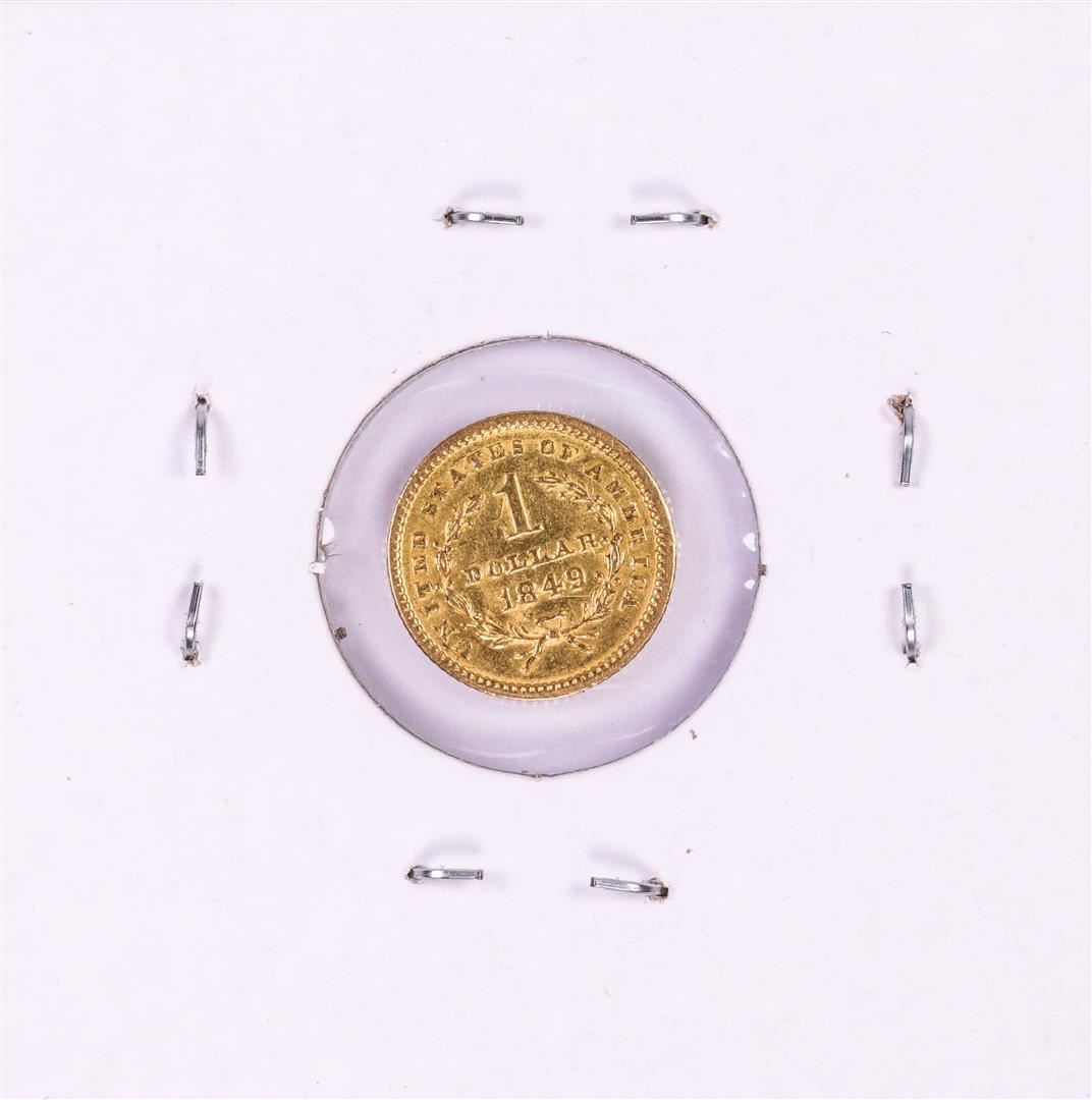 One 1849 Type 1 $1 Liberty Head Dollar Gold Coin.