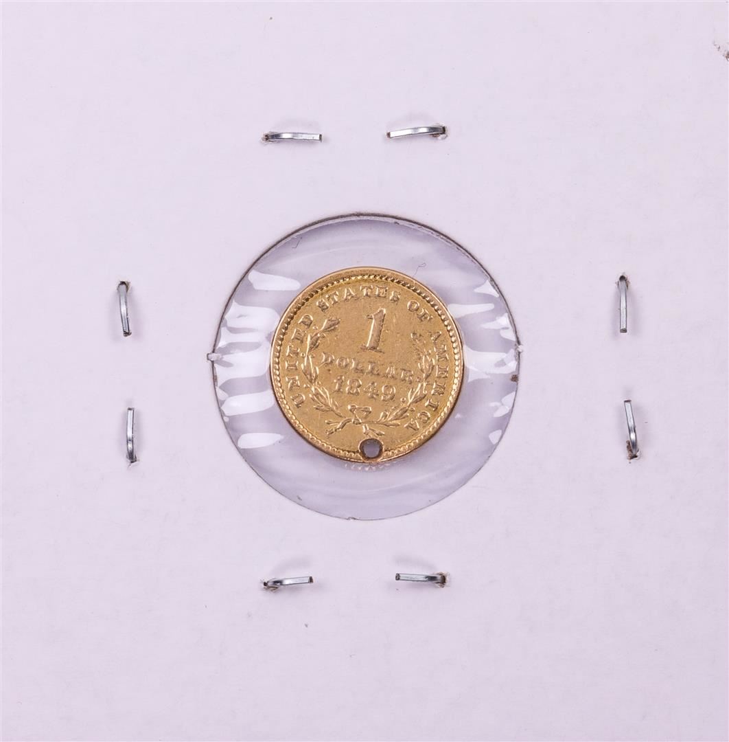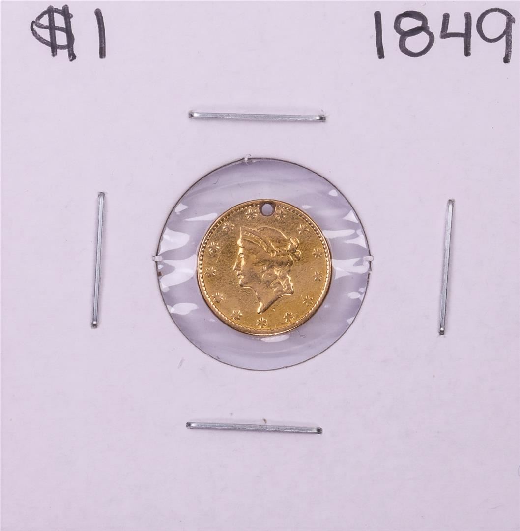 One 1849 Type 1 $1 Liberty Head Gold Dollar Coin w/ Hole.