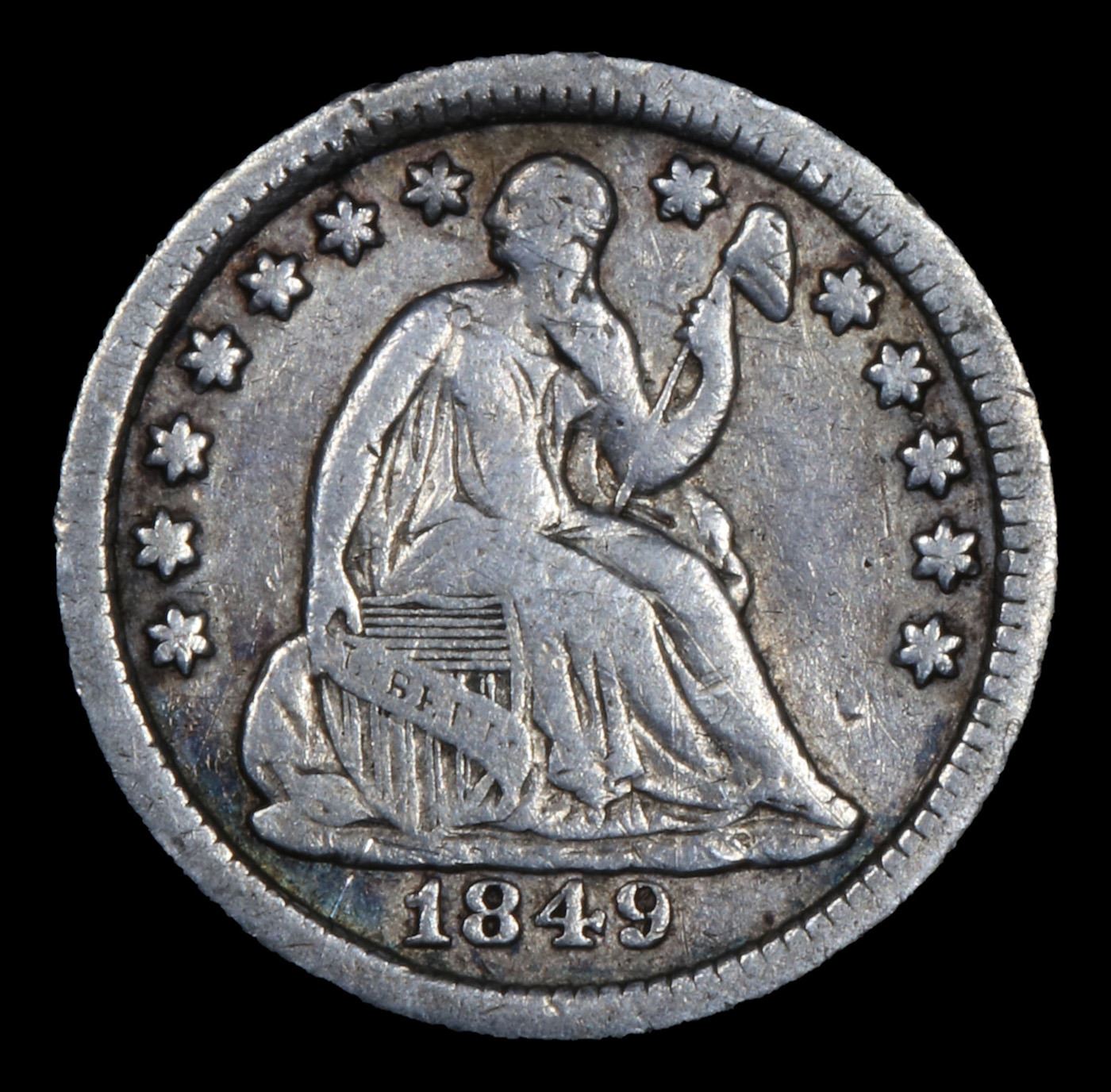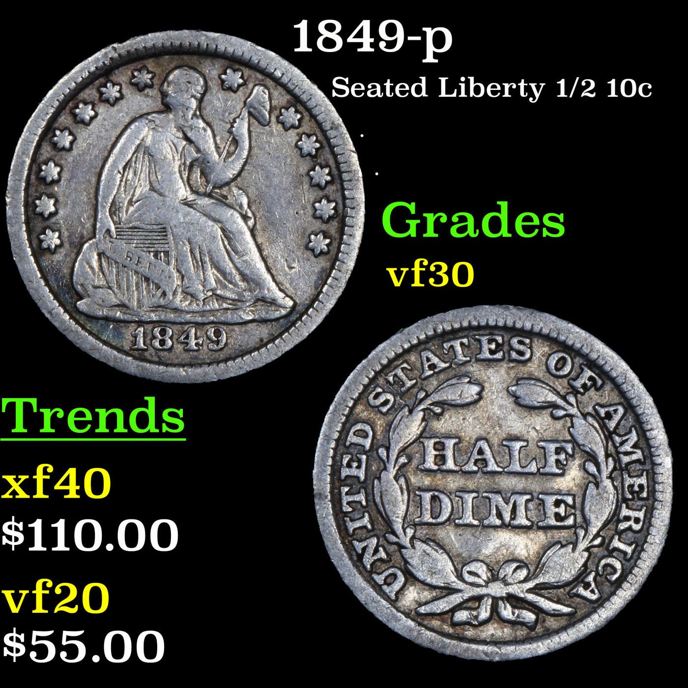 1849-p Seated Liberty Half Dime 1/2 10c Grades vf++.