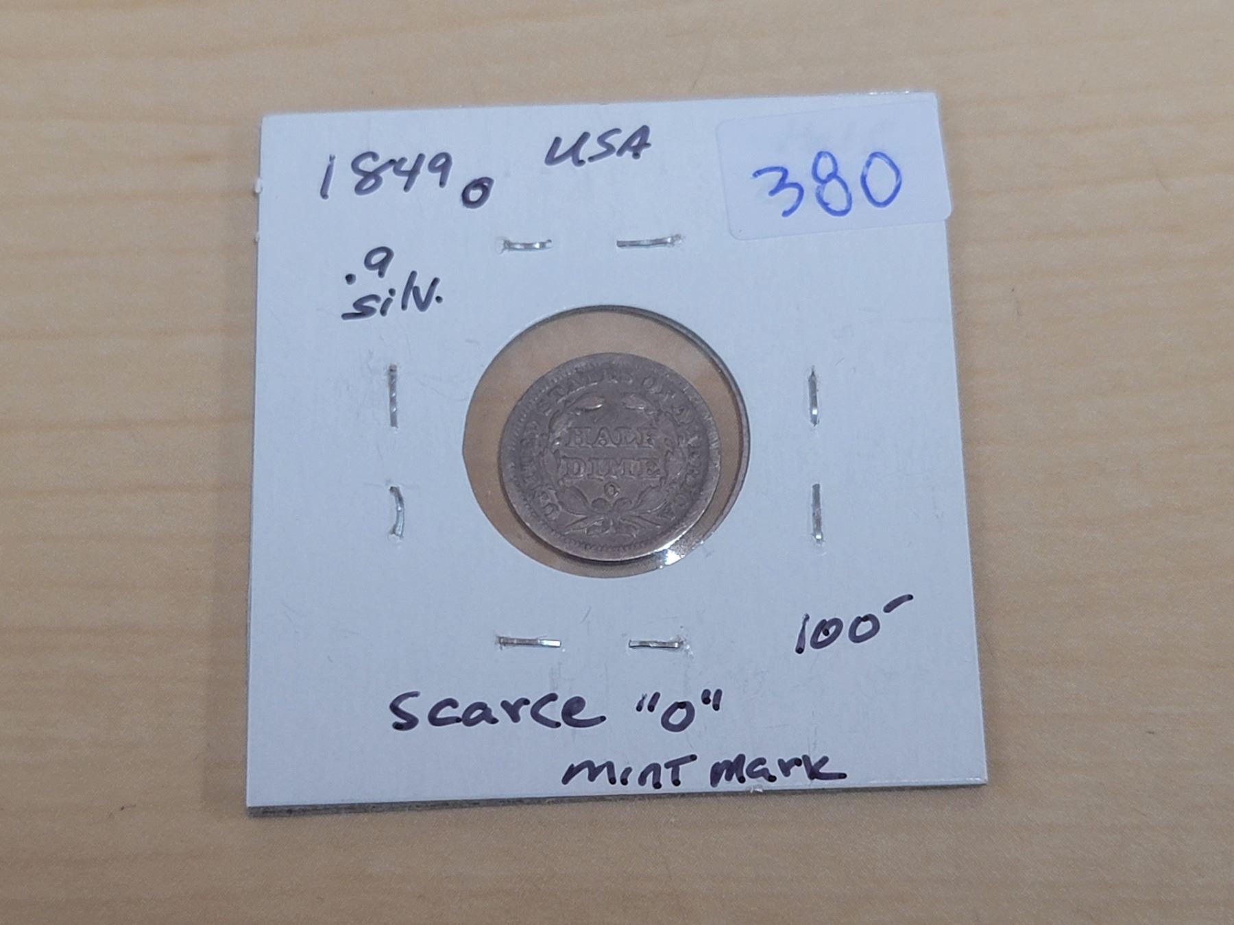 1849o USA Silver Half Dime; SCARCE 'o' Mint Mark
