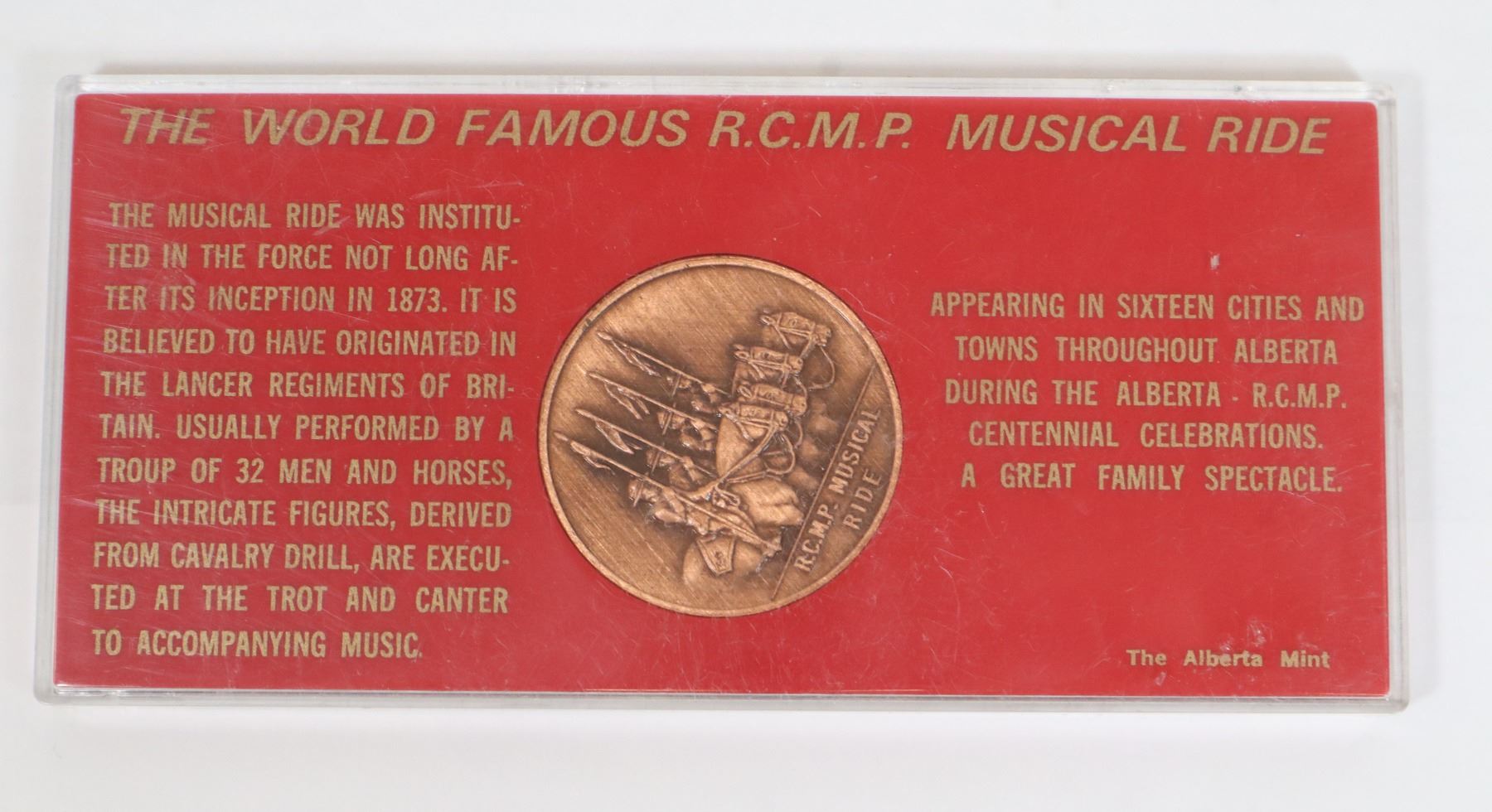 ROYAL CANADIAN MOUNTED POLICE TOKEN COIN IN PROTECTIVE CASE RCMP MUSICAL RIDE 1873-1974
