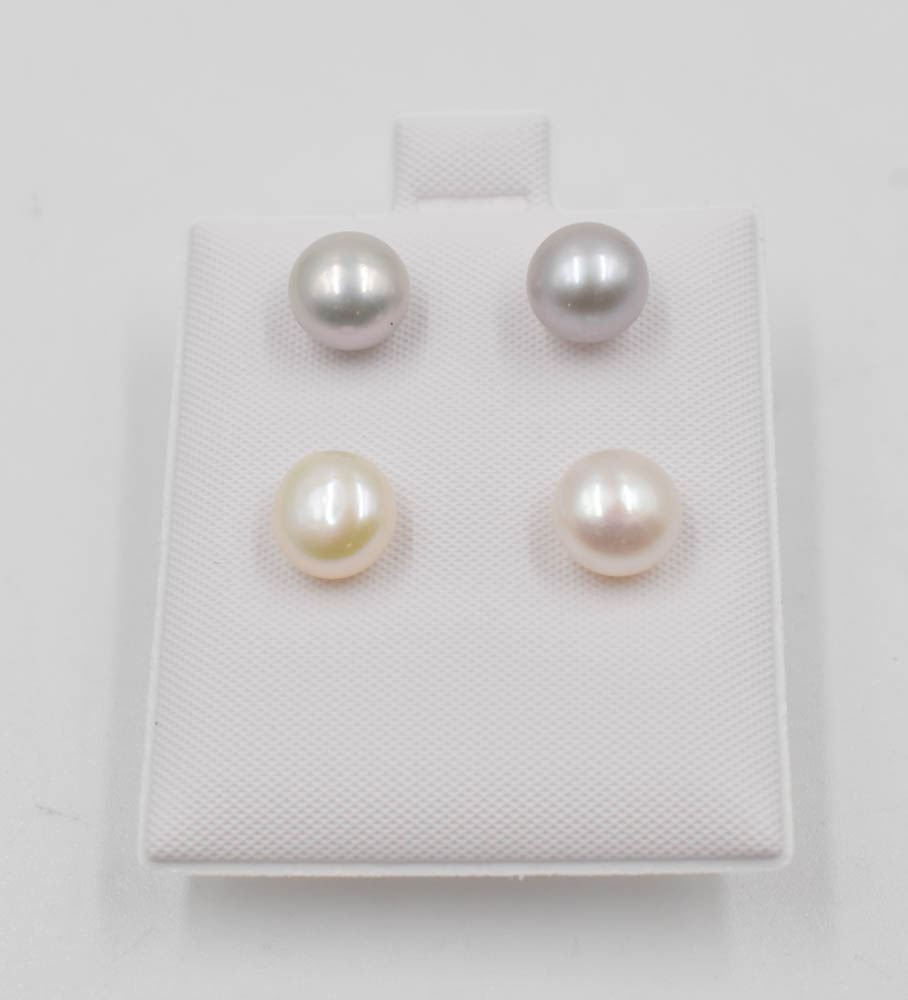 #185-NATURAL AKOYA PEARL STUD EARRINGS 2 PAIRS